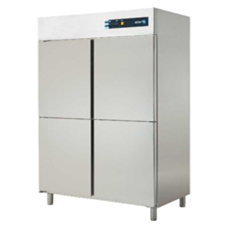 Corp inox, 4 usi 1/2 , picioare ajustabile, dezghetare automata, refrigerent R-404 A, motor in partea superioara, intrerupator iluminat Start/Stop, panou de control cu afisaj digital al temperaturii, temperatura cuprinsa intre -18⁰ si -22⁰, curent 230V, putere 1012W, capacitate 1400L, dimensiune 1388x826x2008mm, tara de origine Spania