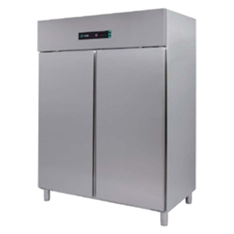 Corp inox, 2usi, dezghetare automata, motor in partea superioara, panou de control cu afisaj digital al temperaturii, temperatura cuprinsa intre -10⁰ si -20⁰, curent 230V, putere 1140W, capacitate 955L, dimensiune 1200x740x1955mm, tara de origine Spania