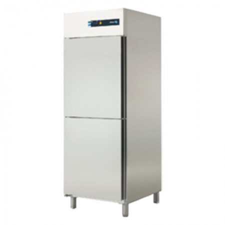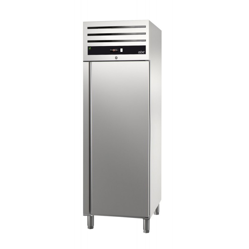 Corp inox, 1 usa, picioare ajustabile, grosime izolatie 60mm, control digital al temperaturii, intrerupator iluminat Start/Stop, garnitura magnetica detasabila pentru curatare usoara, refrigerare cu gaz ecologic R600A, dezghetare automata, motor in partea superioara, putere 700W, consum anual 2179 kWh, capacitate 543L, temperatura cuprinsa intre -16⁰C si -21⁰C, alimentare 230V, dimensiune 653x842x2040mm, clasa energetica D, tara de origine Spania.