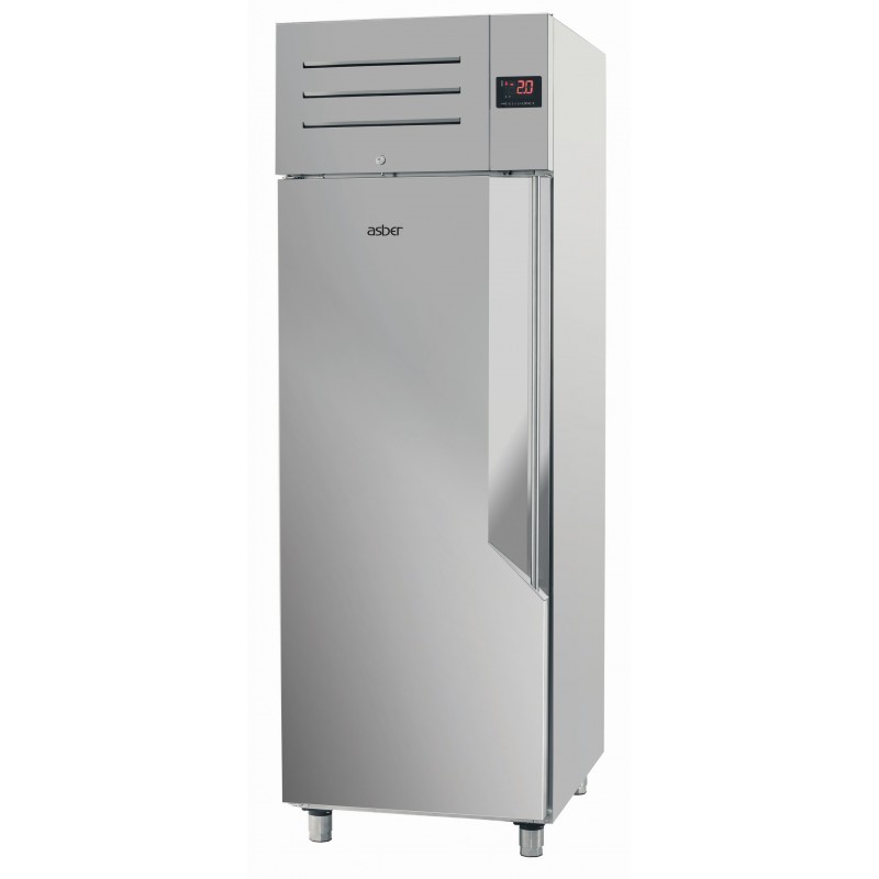 Corp inox, 1 usa, picioare ajustabile, grosime izolatie 50mm, panou de control digital cu parametrii ajustabili, garnitura magnetica detasabila pentru curatare usoara, refrigerare cu gaz ecologic R290, dezghetare cu gaz incalzit, dezghetare automata, motor in partea superioara, putere 678W, consum anual 2231 kWh, capacitate 610L, temperatura cuprinsa intre -18⁰C si -22⁰C, alimentare 230V, dimensiune 693x875x2119mm, clasa energetica D.