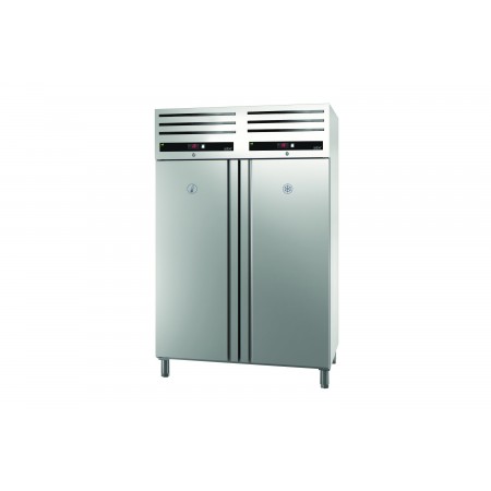 Corp inox, 2 usi, grosime izolatie 80mm, picioare ajustabile, panou de control digital cu parametrii ajustabili, garnitura magnetica detasabila pentru curatare usoara, refrigerare cu gaz ecologic R290, dezghetare cu gaz incalzit, dezghetare automata, motor in partea superioara, putere 750W, consum anual 4482 kWh, capacitate 1332L, temperatura cuprinsa intre -18⁰C si -22⁰C, alimentare 230V, dimensiune 1358x875x2119mm, clasa energetica D.