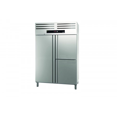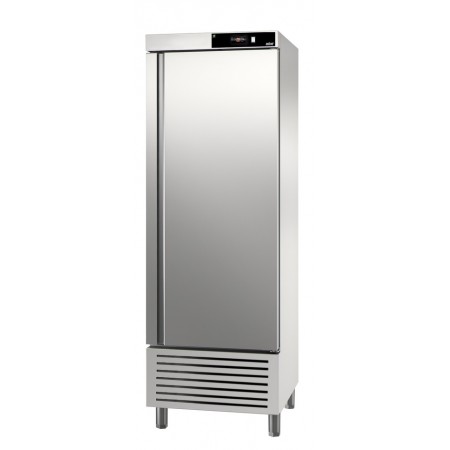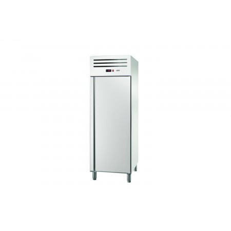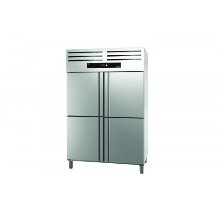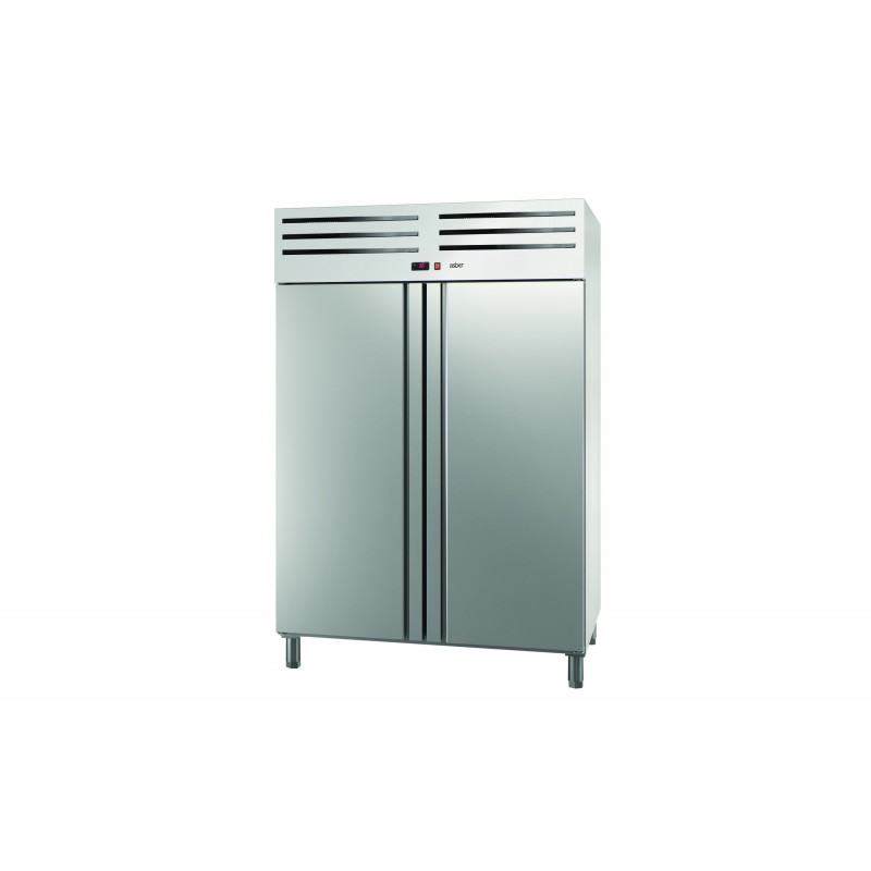 Corp inox, dimensiune 1388 x 844 x 2008 mm, capacitate 1301 litri, putere 0.630 kw, tensiune de alimentare: 230 V 1+N – 50 Hz, consum annual 4623 kwh ,Essenzial line, fabricat din otel inoxidabil de inalta calitate, special conceput pentru aplicatii profesionale intense, avand un design robust si finisaje perfecte. Izolatia din poliuretan cu densitate mare (40 kg/m³), fara CFC, este injectata sub presiune pentru o grosime de 50 mm. Usa din otel inoxidabil este prevazuta cu un maner ergonomic, solid si integrat pe toata lungimea, avand sistem de balamale cu inchidere automata si pozitionare fixa in pozitie deschisa. Balamalele permit intoarcerea automata a usii pentru o inchidere perfecta, minimizand cresterea temperaturii; usa se deschide la un unghi de 120° si se inchide automat la unghiuri sub 90°. De asemenea, balamalele sunt reversibile pentru a permite adaptarea pe loc a dulapului. Optional, modelele cu usa completa pot fi echipate cu incuietoare. Controlul digital intuitiv permite ajustarea rapida a temperaturii, avand si buton luminos de pornire-oprire. Evaporatorul cu flux fortat are o acoperire anti-coroziva, iar Sistemul Inteligent de Circulatie a Aerului asigura consistenta temperaturii datorita unui flux inovator de aer. Comutatorul de usa opreste ventilatorul cand usa este deschisa pentru a evita pierderea aerului rece si a economisi energie. Apa de dezghetare se evapora automat cu ajutorul gazului cald din compresor, reducand consumul de energie. Picioarele din otel inoxidabil sunt ajustabile pe inaltime (130 mm - 200 mm), permitand curatarea usoara, iar optional sunt disponibile pedala pentru picior si rotile. Optional, congelatorul poate fi dotat si cu lumina interioara LED. Sinele de ghidare detasabile permit curatarea usoara, iar pozitionarea si ajustarea gratarelor la inaltimea dorita se pot face fara utilizarea unor sine suplimentare. Gratarele din otel acoperit cu epoxid pentru protectie permit depozitarea diferitelor tipuri de ambalaje si au o capacitate maxima de incarcare de pana la 40 kg. Garnitura magnetica a usii este detasabila pentru a mentine igiena si proprietatile de izolare. Panoul inferior cu drenaj pentru apa este conceput special pentru a face curatarea mai rapida si mai usoara, optim pentru igiena. Interiorul cu margini rotunjite faciliteaza curatarea, reducand posibilele acumulari de murdarie. Exista 18 pozitii de grila in versiunea cu usa completa si 8 pozitii in versiunea cu jumatate de usa, cu o distanta de 70 mm intre ele pentru o capacitate sporita de incarcare. Este compatibil cu containere GN 2/1 sau 2 x GN 1/1, avand sine compatibile si include trei gratare GN 2/1 pentru fiecare compartiment mare de usa. Gazul refrigerant utilizat este R290 hidrocarbonat. Temperatura de lucru variaza intre -17 ºC si -21 ºC in conditii de clasa climat IV. tara de origine Spania.