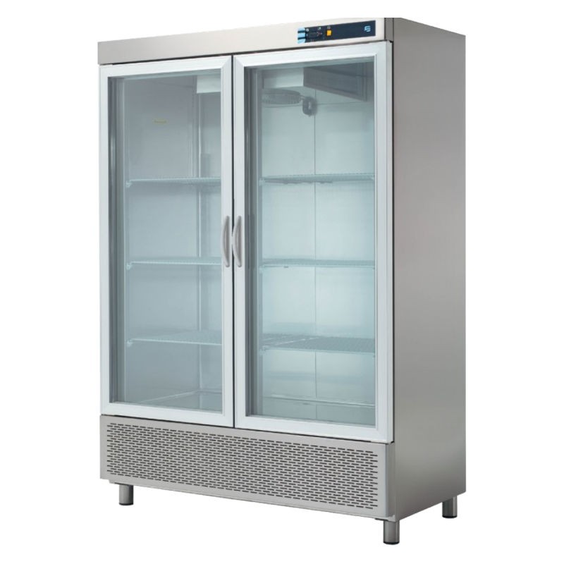 Corp inox, 2 usi din sticla ,picioare ajustabile, dezghetare automata, refrigerent R-134A, motor in partea inferioara ,intrerupator iluminat Start/Stop, panou de control cu afisaj digital al temperaturii, temperatura cuprinsa intre -2⁰si 8⁰, curent 230V, putere 575W, capacitate 1200L, dimensiune 1388x726x2067mm, tara de origine Spania