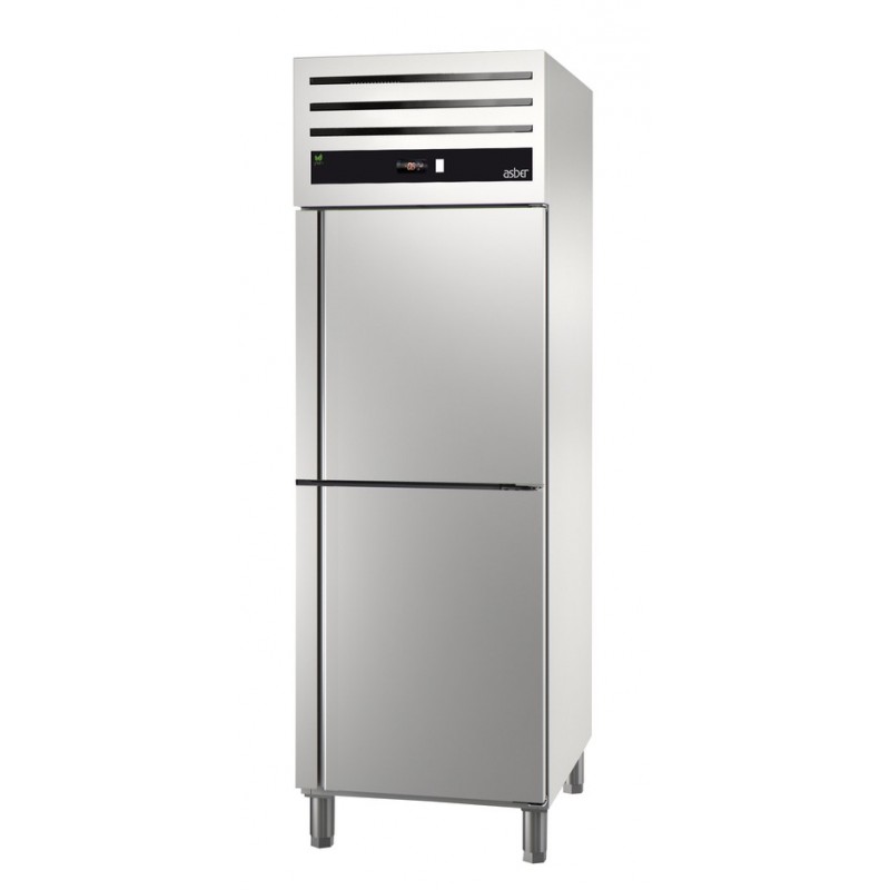 Corp inox, 2 usi(2 x 1/2), picioare ajustabile, grosime izolatie 60mm, control digital al temperaturii, intrerupator iluminat Start/Stop, garnitura magnetica detasabila pentru curatare usoara, refrigerare cu gaz ecologic R600A, dezghetare automata, motor in partea superioara, putere 182W, consum anual 548 kWh, capacitate 543L, temperatura cuprinsa intre -2⁰C si 8⁰C, alimentare 230V, dimensiune 653x842x2040mm, clasa energetica C, tara de origine Spania.