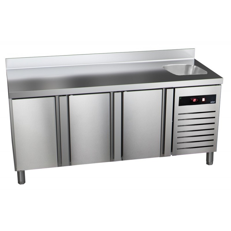 Corp inox, 3 usi, racire de la distanta, picioare ajustabile, grosime izolatie 50mm, control digital al temperaturii, intrerupator iluminat Start/Stop, garnitura magnetica detasabila pentru curatare usoara, refrigerare cu gaz ecologic R600A, dezghetare automata, dimensiune chiuveta 330x330x200mm, putere 204W, consum anual 931kWh, capacitate 428L, temperatura cuprinsa intre -2⁰C si +8⁰C, alimentare 230V, dimensiune 1792x700x850mm, clasa energetica C, tara de origine Spania.