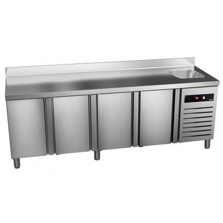 Corp inox, 2 usi(2 x 1/2), 2 compartimente de refrigerare independente, temperatura cuprinsa intre -2⁰C si +8⁰C(refrigerare) si intre -16⁰C si -21⁰C(congelare), picioare ajustabile, grosime izolatie 50mm, control digital al temperaturii, intrerupator iluminat Start/Stop, garnitura magnetica detasabila pentru curatare usoara, refrigerare cu gaz ecologic R290, dezghetare automata, motor in partea inferioara, putere 290+723W, capacitate 240+217L, alimentare 230V, dimensiune 693x726x2067mm, tara de origine Spania.