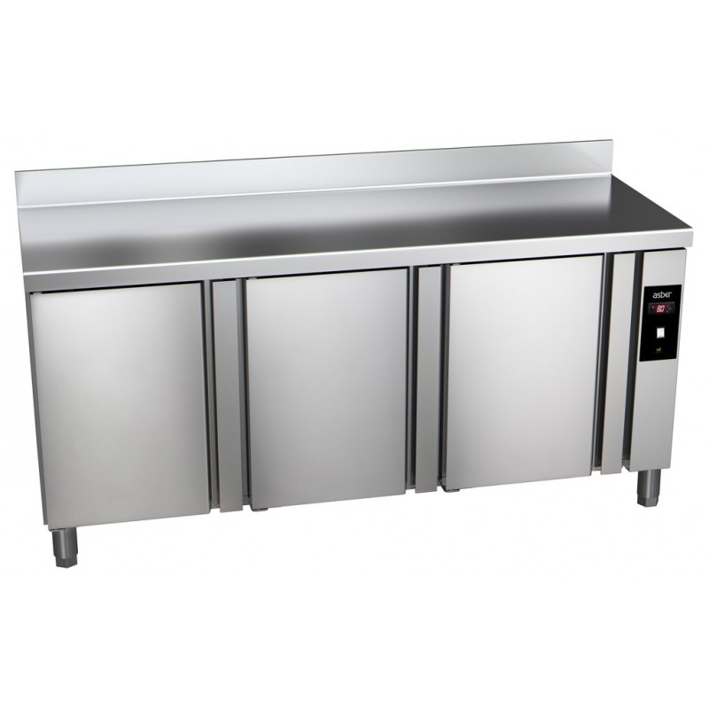 Corp inox, 3 usi, picioare ajustabile, grosime izolatie 50mm, control digital al temperaturii, modular, fara agregat, intrerupator iluminat Start/Stop, garnitura magnetica detasabila pentru curatare usoara, refrigerare cu gaz ecologic R600A, dezghetare automata, putere 29W, capacitate 428L, temperatura cuprinsa intre -2⁰C si 8⁰C, alimentare 230V, dimensiune 1492x700x850, tara de origine Spania.