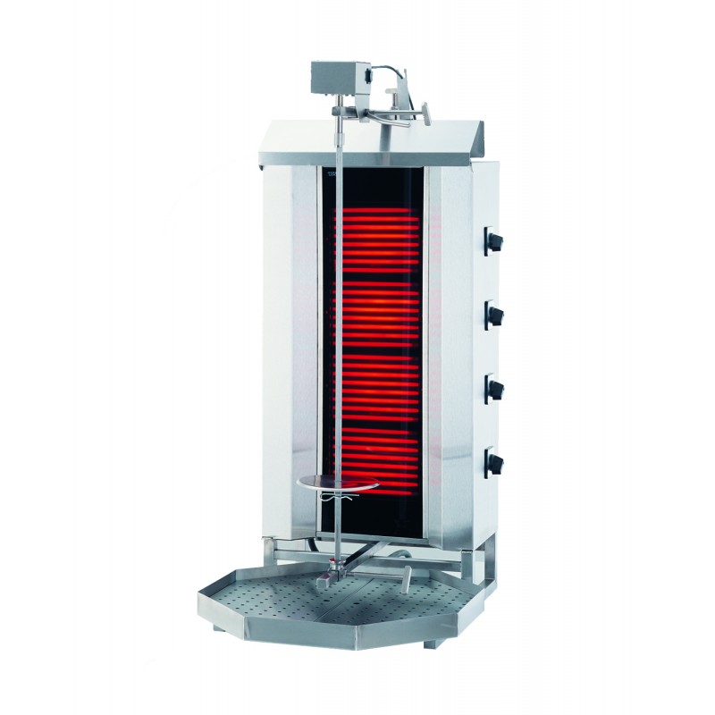 Corp inox, capacitate 40-60Kg, aripi laterale, sticla termica, extensie tava, tava perforata, motor situat sus cu 2 sensuri de rotire, 4 rezistente, termostat 4 pozitii, tava colectoare, putere 7.2kW, alimentare 380V, greutate 30kg, dimensiune 550x715x1120mm, tara de origine Turcia