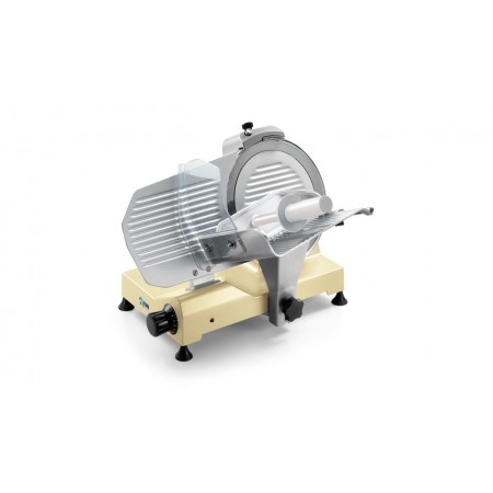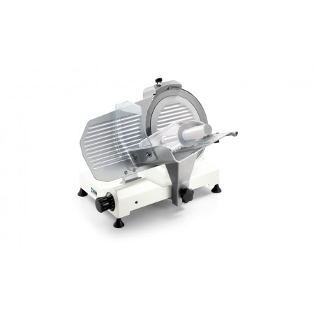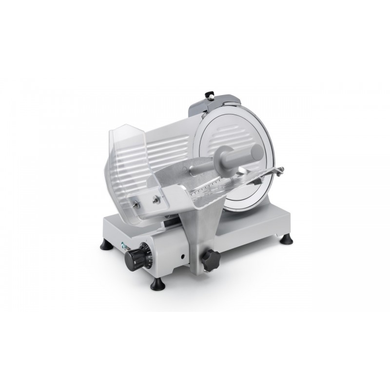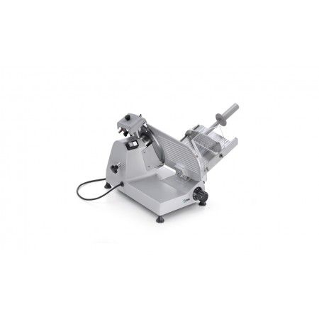 Corp inox, dimensiuni de 405x 245 x 365 mm, putere 0.132 kw, lama 220 mm, grosimea taierii 13mm, tensiune de alimentare: 230v/50 Hz. Corp din aluminiu vopsit.Componente din aluminiu anodizat.Presor ergonomic pentru alimente, realizat din aluminiu turnat sub presiune, cu dinti proiectati pentru a fixa optim produsul pentru taiere.