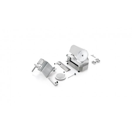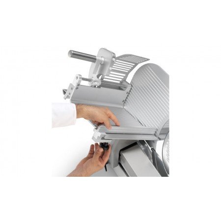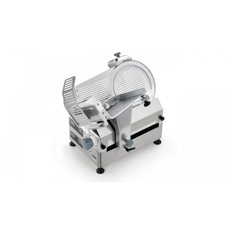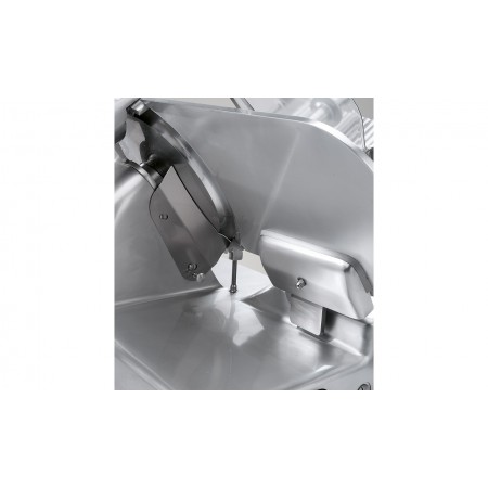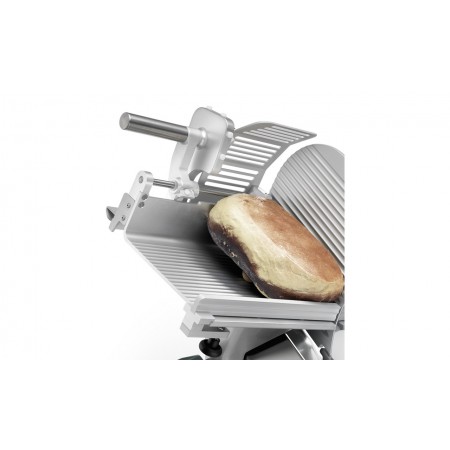 Corp inox, dimensiuni de 465 x 340 x 575 mm, putere 0.275kw/0.37cp + 0.180kw/0.24 cp. lama 330 mm, grosimea taierii 23 mm, tensiune de alimentare: 230v/50 Hz.Structura automatismului este din oțel inoxidabil sudat și rotunjit. Mișcarea căruciorului este realizată printr-un sistem piston/tijă. Motorul pentru mișcarea căruciorului este ventilat și dotat cu o cutie de viteze de baie de ulei de calitate comercială. Lama și mișcarea căruciorului sunt acționate de comenzi separate. Un braț de comutare ușor accesibil permite conversia unității de la funcționare automată la funcționare manuală.Există două sisteme de control: unul standard (pornit/oprit) și unul VV (pornit/oprit cu variator de viteză). Capacitatea de feliere pe minut este de 37 felii în regim normal, iar pentru variatorul de viteză VV, între 4 și 50 felii.Opționale disponibile includ cuva Nettuno și un contor de felii.Modelul 350 Frozen este special conceput pentru felierea cărnii congelate până la -12°C. viteza varianta 4-50 rpm. tara de originie Italia.