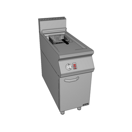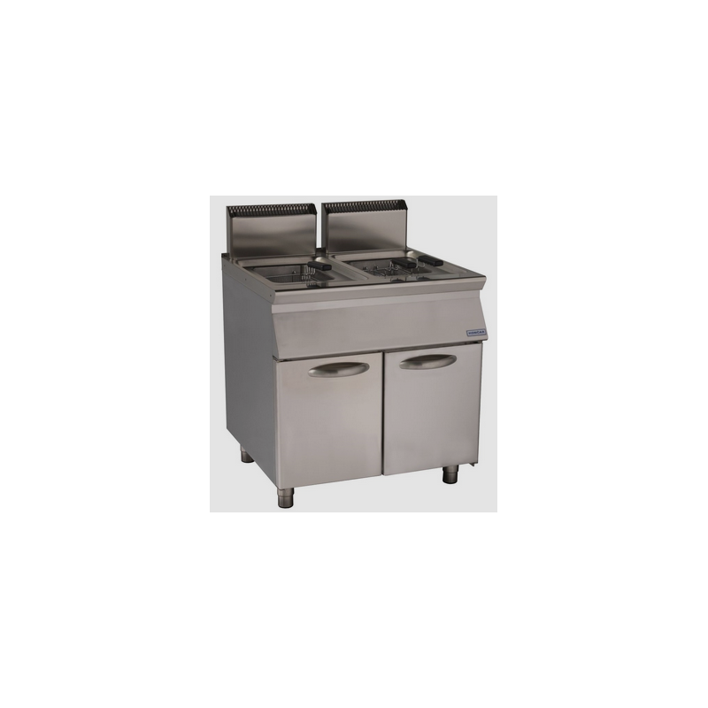 Corp inox cu dulap inchis, dimensiuni 800x930x875mm, putere 2x16kW, bazine cu zona rece si zona de decantare, dimensiuni bazin 310x350x275mm, filtru de ulei, flacara de veghe, termocupla, aprindere piezoelectrica, capacitate 2x17 litri, dimensiuni cos 200x310x120mm, termostat 100⁰-195⁰C, limitator de temperatura 220⁰C, tara de origine Croatia.