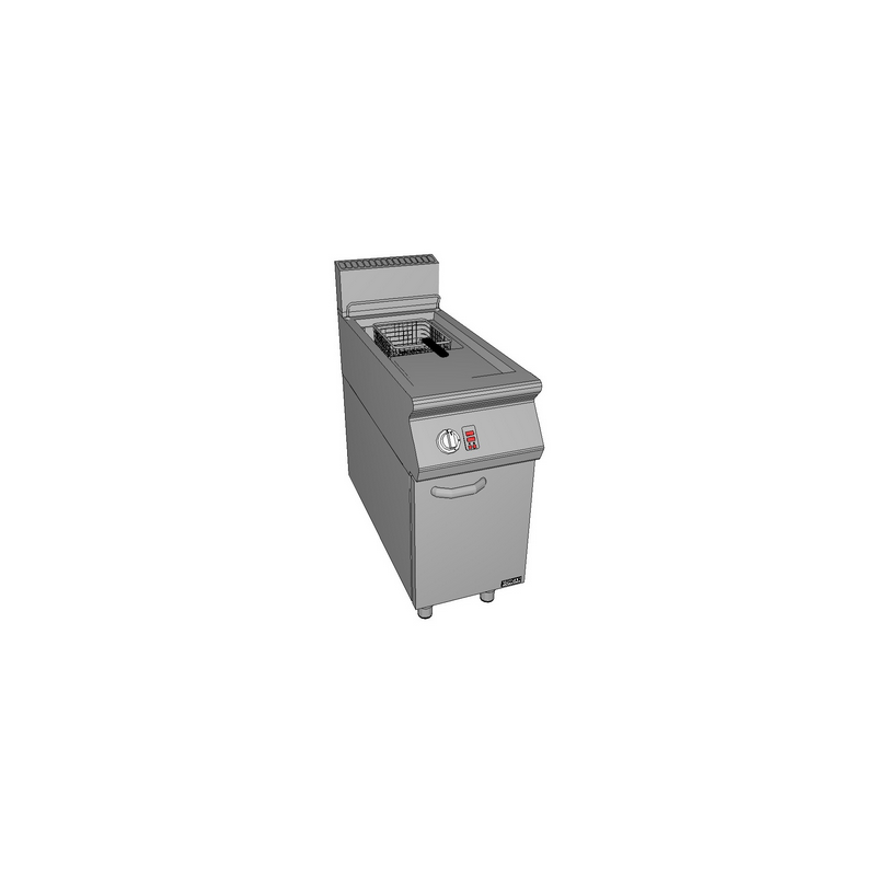 Corp inox cu dulap inchis, dimensiuni 400x930x875mm, putere 16.5kW, bazin cu zona rece si zona de decantare, dimensiuni bazin 300x420x245 mm, filtru de ulei, flacara de veghe, termocupla, aprindere piezoelectrica, capacitate 17 litri, dimensiuni cos 280x370x120 mm, termostat electronic cu reglare precisa 100⁰-195⁰C, limitator de temperatura 220⁰C, tara de origine Croatia.