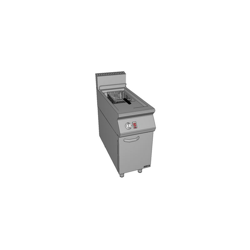 Corp inox cu dulap inchis, dimensiuni 400x930x875mm, putere 21kW, bazin cu zona rece si zona de decantare, dimensiuni bazin 330x420x325 mm, filtru de ulei, flacara de veghe, termocupla, aprindere piezoelectrica, capacitate 21 litri, dimensiuni cos 300x370x120 mm, termostat electronic cu reglare precisa 100⁰-195⁰C, limitator de temperatura 220⁰C, tara de origine Croatia.