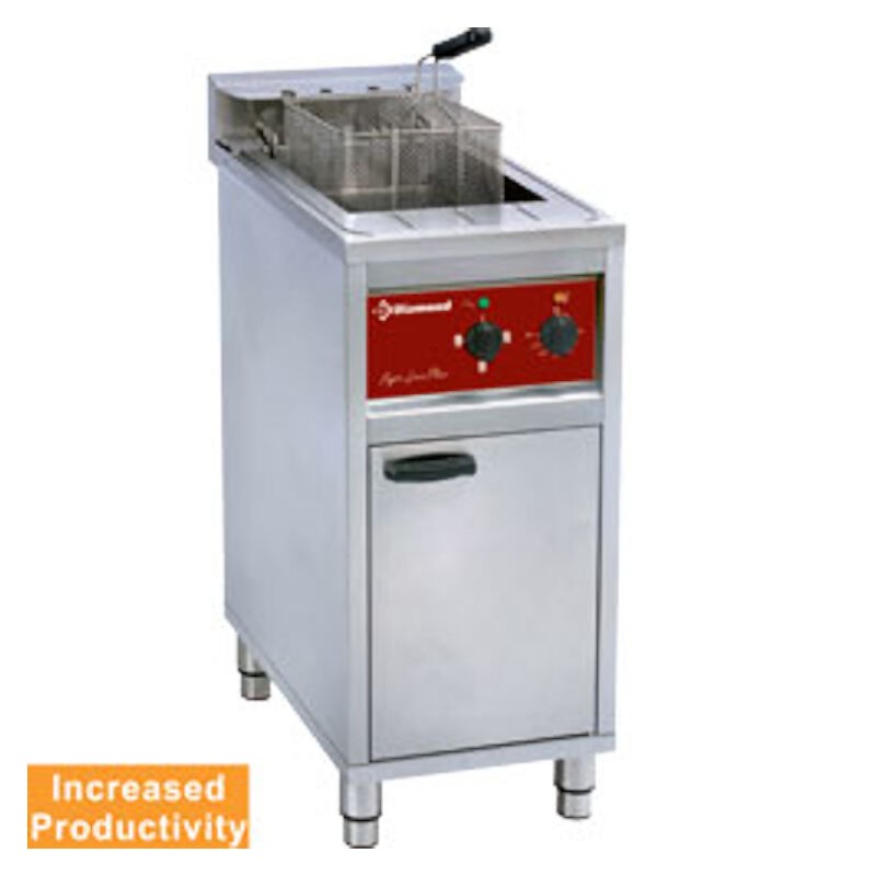 Corp inox, capacitate 16l, rezistenta detasabila, putere reglabila 4-8-12kW, temperatura de lucru cuprinsa intre 0 si 180C, dimensiune cos 205x305x145 mm, tava de colectare cu filtru, putere 16kW, alimentare 400V/50hz, greutate 34kg, dimensiune 400x600x980mm, picioare reglabile, tara de origine Belgia