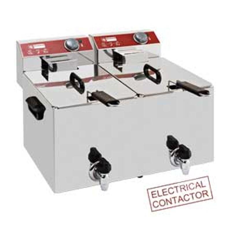 Corp inox, capacitate 2x8l, dimensiune cos 220x190x110mm, robinet de scurgere a grasimii, temperatura maxima 180C, putere 7kW, alimentare 2x220V/50hz, greutate 10.9kg, dimensiune 290x450x320mm, picioare reglabile, tara de origine Belgia