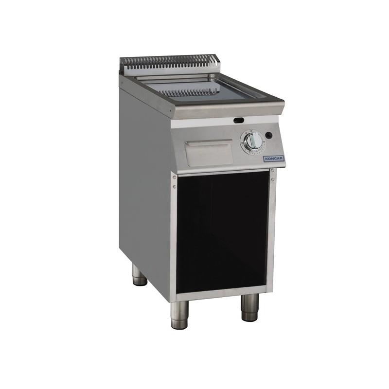 Corp inox cu suport inchis pe 3 laturi, grosime suprafata de coacere 16mm, dimensiuni suprafata de coacere 335x525mm, sertar de colectare grasimi inclus(3 litri), termostat 100°C-300°C, alimentare gaz, flacara de veghe, termocupla, valva de siguranta, aprindere piezo-electrica, dimensiune 400x730x875mm, putere 6kW, picioare ajustabile, tara de origine Croatia.