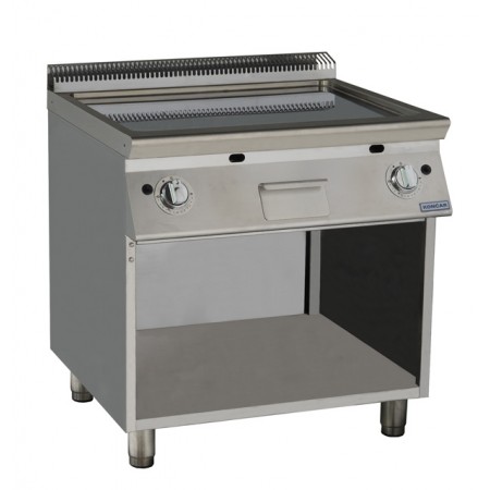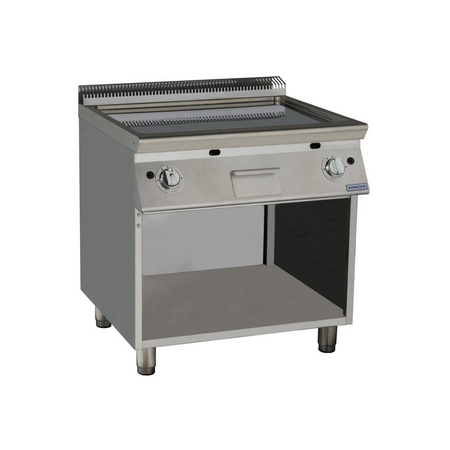 Corp inox cu suport inchis pe 3 laturi, suprafata de coacere cromata de grosime 16mm, dimensiuni suprafata de coacere 335x525mm, sertar de colectare grasimi inclus(3 litri), termostat 100°C-300°C, alimentare gaz, flacara de veghe, termocupla, valva de siguranta, aprindere piezo-electrica, dimensiune 400x730x875mm, putere 6kW, picioare ajustabile, tara de origine Croatia.