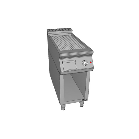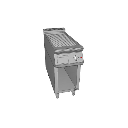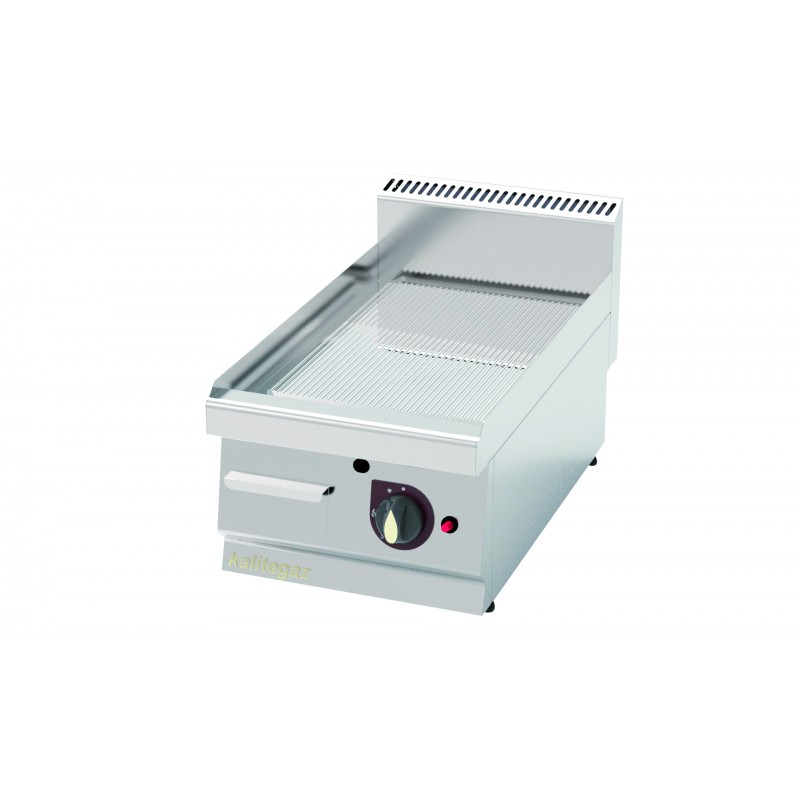 Corp inox, plita striata grosime 12mm, dimensiune 400x700x300mm, alimentare electrica 400V/50hz, grasime usor de indepartat din tava de colectare, temperatura arzatorului reglabila intre 50 si 300 grade C , putere 4.8kw, greutate 33kg, tara de origine Turcia