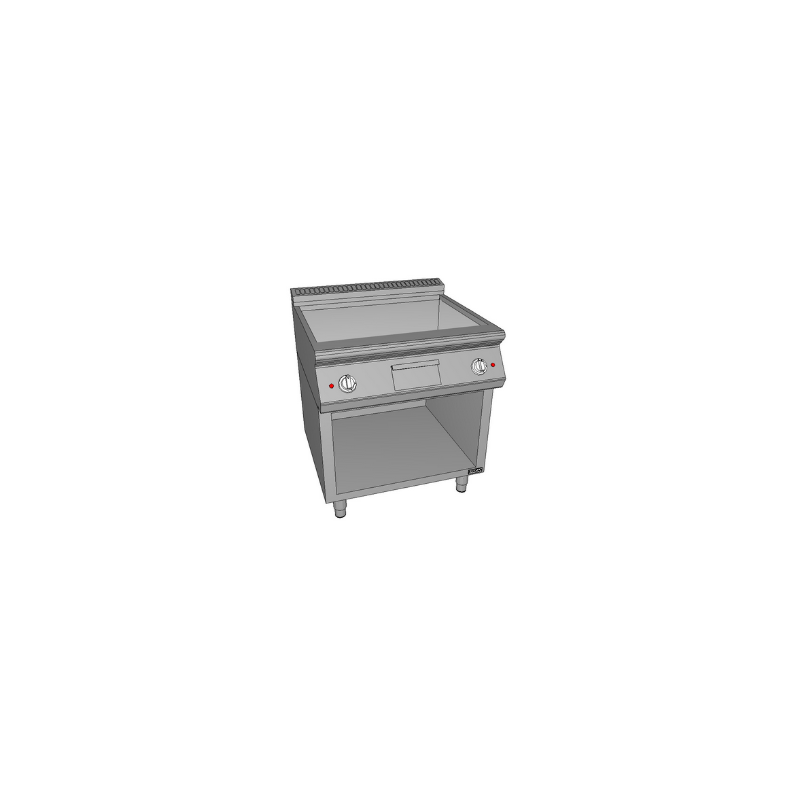 Corp inox cu suport inchis pe 3 laturi, suprafata de coacere cromata de grosime 16mm, dimensiuni suprafata de coacere 735x525mm, sertar de colectare grasimi inclus(3 litri), termostat 100°C-300°C, termostat de siguranta, alimentare 400V/50Hz, dimensiune 800x730x875mm, putere 10.8kW, picioare ajustabile, tara de origine Croatia.
