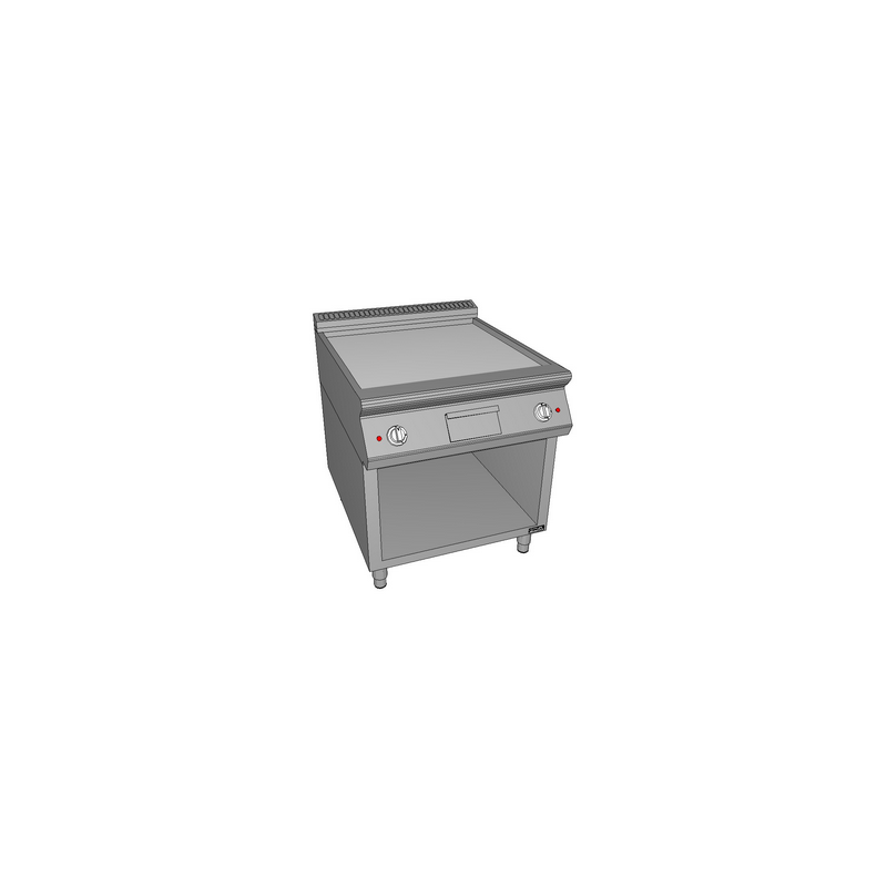 Corp inox cu suport inchis pe 3 laturi, suprafata de coacere cromata de grosime 16mm, dimensiuni suprafata de coacere 735x700mm, sertar de colectare grasimi inclus(3 litri), termostat 100°C-300°C, termostat de siguranta, alimentare 400V/50Hz, dimensiune 800x930x875mm, putere 15kW, picioare ajustabile, tara de origine Croatia.