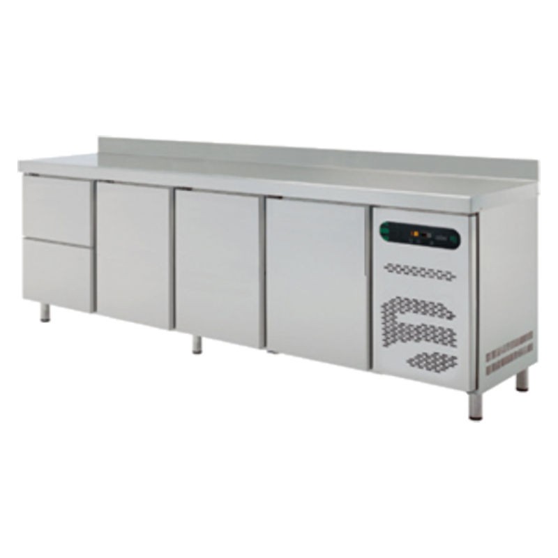 Corp inox, picioare ajustabile, refrigerent R-134A, dezghetare automata, intrerupator Start/Stop, panou control cu afisaj al temperaturii, temperatura intre -2⁰ si 8⁰, 1 raft per usa, curent 230V, putere 615W, dimensiune 2542x600x850mm, capacitate 535L, tara de origine Spania