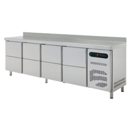 Corp inox, 4 usi, picioare ajustabile, grosime izolatie 50mm, control digital al temperaturii, modular, fara agregat, intrerupator iluminat Start/Stop, garnitura magnetica detasabila pentru curatare usoara, refrigerare cu gaz ecologic R600A, dezghetare automata, putere 29W, capacitate 564L, temperatura cuprinsa intre -2⁰C si +8⁰C, alimentare 230V, dimensiune 2242x600x850, tara de origine Spania.