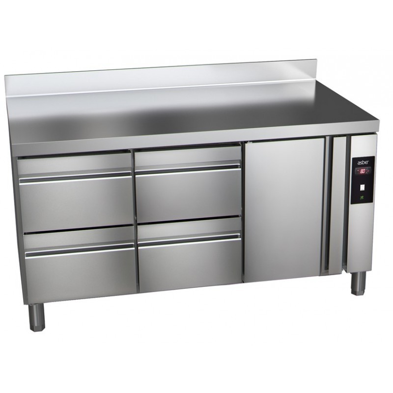 Corp inox, 1 usa, 4 sertare(4 x 1/2), picioare ajustabile, grosime izolatie 50mm, control digital al temperaturii, modular, fara agregat, intrerupator iluminat Start/Stop, garnitura magnetica detasabila pentru curatare usoara, refrigerare cu gaz ecologic R600A, dezghetare automata, putere 29W, capacitate 428L, temperatura cuprinsa intre -2⁰C si +8⁰C, alimentare 230V, dimensiune 1492x700x850, tara de origine Spania.