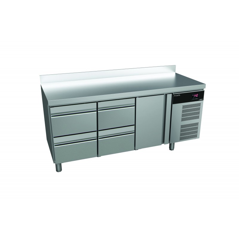 Corp inox, dimensiune 1792 x 700 x 850mm, capacitate 446 litri, putere 0.160kw, tensiune de alimentare: 230 V 1+N – 50 Hz, consum annual 453 kwh, Avantis line,Fabricat special din otel inoxidabil de inalta calitate pentru utilizari profesionale intensive, acest echipament se remarca prin designul robust si finisajele perfecte. Blatul de lucru din otel inoxidabil de 30 mm este prevazut cu un antistrop de 100 mm inaltime, prevenind scurgerile in spatele tejghelei. Izolatia este realizata din poliuretan de inalta densitate, fara CFC, cu grosime de 60 mm, injectata la presiune inalta pentru performanta superioara. Sertarele din otel inoxidabil sunt echipate cu funduri perforate si ghidaje telescopice care permit retragerea completa, optimizand suprafata de lucru, iar alte configuratii de sertare pot fi disponibile la cerere. Usile din otel inoxidabil au manere ergonomice integrate pe toata lungimea, pentru o deschidere practica, prevenind acumularea de praf si murdarie. Panoul de control de mari dimensiuni, sensibil la atingere, permite ajustarea parametrilor, dispune de mod economisire a energiei si sistem de alarma HACCP. panoul frontal pivotant, cu design de ventilare frontala, permite incastrarea echipamentului fara a compromite performanta. Grila de ventilatie frontala mentine sistemul de racire ventilat si eficient. evaporatorul are ventilatie fortata si este acoperit anti-coroziv, iar sistemul inteligent de circulatie a aerului asigura consistenta perfecta a temperaturii prin designul inovator al fluxului de aer. evaporarea apei de dezghetare se face automat, utilizand gazul cald de la compresor, reducand astfel consumul de energie. Picioarele reglabile pe inaltime (130 mm – 200 mm) faciliteaza curatarea, iar optional pot fi adaugate roti. Sinele de ghidare detasabile permit curatarea fara unelte suplimentare, iar gratarele acoperite cu epoxid permit depozitarea diferitelor ambalaje, avand o capacitate maxima de incarcare de 40 kg. Echipamentul ofera 13 pozitii pentru gratare, cu o distanta de 36 mm intre ele, pentru capacitate sporita de incarcare. garnitura magnetica a usilor este detasabila, permitand mentinerea igienei si a proprietatilor de izolare. Interiorul cu margini rotunjite faciliteaza curatarea si reduce locurile de acumulare a murdariei. Acest model este compatibil cu containere de alimentare GN 1/1 si este echipat cu sine compatibile, avand inclus un gratar GN 1/1 pentru fiecare usa. Temperatura de lucru este de 0 ºC la +8 ºC in conditii de climatizare de Clasa V, utilizand gaz refrigerant R600a Hydrocarbon. tara de origine Spania.