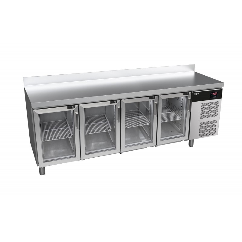 Corp inox, dimensiune 2242 x 700 x 850mm, capacitate 590 litri, putere 0.170kw, tensiune de alimentare: 230 V 1+N – 50 Hz, consum annual 934 kwh, Avantis line, Fabricat special din otel inoxidabil de inalta calitate pentru aplicatii profesionale intensive, acest echipament prezinta un design robust si finisaje impecabile. Blatul de lucru de 30 mm este din otel inoxidabil injectat si este prevazut cu un antistrop de 100 mm, prevenind scurgerile in spatele tejghelei. Izolatia de 60 mm este realizata din poliuretan de inalta densitate, fara CFC, injectata sub presiune inalta pentru eficienta termica superioara, usile duble sunt prevazute cu geamuri duble, izolate cu un gaz cu emisivitate termica redusa pentru a minimiza transferul de caldura. Manerele ergonomice din zamac placat cu nichel asigura o deschidere facila. Usile cu balamale sunt prevazute cu un sistem de revenire automata, asigurand o inchidere perfecta pentru a minimiza castigul de temperatura; acestea raman deschise la 120° si se inchid automat sub 90°. Panoul de control tactil de mari dimensiuni permite ajustarea rapida a parametrilor, include mod de economisire a energiei si sistem de alarma HACCP. panoul frontal pivotant cu sistem de ventilare frontala permite integrarea aparatului fara a compromite performanta. Grila de ventilatie de pe panoul frontal asigura o ventilatie constanta a sistemului de racire. Evaporatorul are ventilare fortata si acoperire anti-corozine, iar sistemul inteligent de circulatie a aerului mentine temperatura uniforma in interior.e chipamentul dispune de sistem de evaporare automata a apei de dezghetare, realizata prin utilizarea gazului fierbinte de la compresor, reducand consumul de energie. Iluminarea LED cu consum redus de energie din interior imbunatateste vizibilitatea, iar butonul de pornire-oprire permite reglarea iluminarii. Picioarele reglabile din otel inoxidabil, ajustabile individual de la 130 mm la 200 mm, faciliteaza curatarea, iar optional pot fi adaugate roti. Sinele de ghidare detasabile permit curatarea usoara fara unelte suplimentare, iar gratarele acoperite cu epoxid permit depozitarea ambalajelor de diferite dimensiuni, suportand o incarcare de pana la 40 kg. ofera 13 niveluri de pozitionare a gratarelor, cu o distanta de 36 mm intre ele, pentru o capacitate de incarcare sporita. Garnitura magnetica detasabila asigura igiena maxima si pastreaza proprietatile izolatoare, iar interiorul cu margini rotunjite usureaza curatarea si reduce acumularea de murdarie. Compatibil cu containere GN 1/1, echipamentul include sine compatibile si un gratar GN 1/1 pentru fiecare usa. Temperatura de lucru este intre +0 ºC si +8 ºC, in conditii de climatizare de Clasa IV, folosind agent frigorific R600a Hydrocarbon. tara de origine Spania.