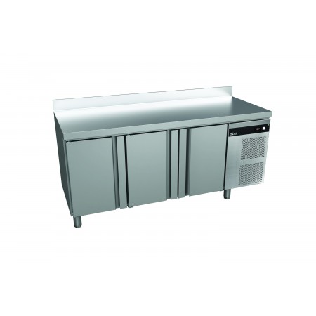 Corp inox, dimensiune 1792 x 700 x 850mm, capacitate 446 litri, putere 0.198kw, tensiune de alimentare: 230 V 1+N – 50 Hz, consum annual 591 kwh, New green line,Fabricat special din otel inoxidabil de inalta calitate pentru aplicatii profesionale intensive, acest echipament este extrem de robust si beneficiaza de finisaje perfecte. Blatul de lucru din otel inoxidabil de 30 mm este injectat si dispune de un antistrop de 100 mm, prevenind scurgerile in spatele tejghelei. Izolatia are o grosime de 60 mm si este realizata din poliuretan de inalta densitate, fara CFC, injectata sub presiune inalta pentru eficienta maxima, usile din otel inoxidabil sunt prevazute cu un maner ergonomic, lung si robust, perfect integrat, care asigura o deschidere practica si previne acumularea prafului si a murdariei. Usile cu balamale au un sistem de revenire automata pentru o inchidere perfecta, minimizand cresterea temperaturii; acestea raman deschise la 120° si se inchid automat la un unghi mai mic de 90°. Balamalele usilor sunt reversibile, permitand adaptarea echipamentului la fata locului. panoul de control digital intuitiv permite reglarea rapida a parametrilor de temperatura. Echipamentul este dotat cu un buton luminos de pornire-oprire si panou frontal pivotant cu design de ventilare frontala, facilitand integrarea fara a afecta performanta. Grila de ventilatie de pe panoul frontal mentine sistemul de racire ventilat si eficient. Evaporatorul cu ventilatie fortata are un invelis anti-coroziv, iar Sistemul Inteligent de Circulatie a Aerului asigura o consistenta perfecta a temperaturii datorita fluxului de aer inovator.echipamentul dispune de sistem de evaporare automata a apei de dezghetare, realizata prin utilizarea gazului fierbinte de la compresor in loc de elemente de incalzire, reducand astfel consumul de energie. Picioarele din otel inoxidabil sunt reglabile in inaltime, fiecare putand fi ajustat individual intre 130 mm si 200 mm, facilitand curatarea; optional, sunt disponibile roti. Sinele de ghidare detasabile permit operatiuni de curatare mai comode fara unelte suplimentare. Gratarele acoperite cu epoxid, pentru protectie sporita, permit depozitarea diverselor tipuri de ambalaje si suporta o incarcare maxima de pana la 40 kg.dispune de 13 pozitii pentru nivelurile gratarelor, cu o distanta de 36 mm intre ele, pentru o capacitate de incarcare sporita. Garnitura magnetica detasabila permite mentinerea igienei si proprietatile izolante, iar interiorul cu margini rotunjite faciliteaza curatarea si reduce acumularea murdariei. Compatibil cu containere GN 1/1 si echipat cu sine compatibile, avand un gratar GN 1/1 pentru fiecare usa. Temperatura de lucru este de 0 ºC pana la +8 ºC in conditii de climatizare Clasa V. Utilizeaza agent frigorific R600a Hydrocarbon, tara de origine Spania.