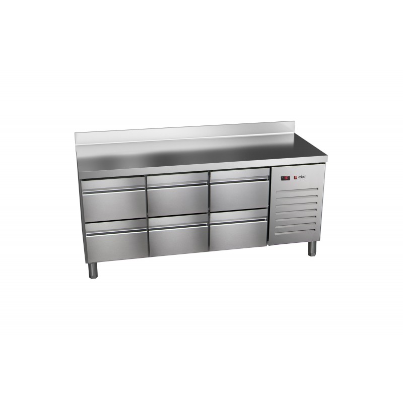 Corp inox, dimensiune 1792 x 700 x 850mm, capacitate 428 litri, putere 0.249 kw, tensiune de alimentare: 230 V 1+N – 50 Hz, consum annual 1119 kwh, Essenizal line,Fabricat special din otel inoxidabil de inalta calitate pentru aplicatii profesionale intensive, acest echipament ofera un design robust si finisaje perfecte. Blatul de lucru greu, din otel inoxidabil, de 50 mm grosime, este prevazut cu un antistrop de 100 mm inaltime pentru a preveni scurgerile in spatele tejghelei. Izolatia din poliuretan de inalta densitate (40 kg/m³), fara CFC, este injectata sub presiune si are o grosime de 50 mm. Sertarele din otel inoxidabil includ placi perforate la baza si ghidaje telescopice care permit o retragere completa pentru a optimiza suprafata de lucru. Alte configuratii de sertare sunt disponibile la cerere. Ghidajele glisante cu inchidere automata si opritorii de deschidere asigura o functionare lina, iar manerul ergonomic, perfect integrat, faciliteaza deschiderea practica a sertarelor. Panoul de control si ventilarea motorului dispun de deschidere pivotanta frontala, oferind acces facil pentru intretinere. Controlul digital intuitiv permite ajustarea rapida si usoara a parametrilor de temperatura, iar butonul luminos de pornire-oprire imbunatateste vizibilitatea functionarii. Grila de ventilare de pe panoul frontal mentine sistemul de racire ventilat si eficient, in timp ce evaporatorul cu ventilatie fortata este protejat impotriva coroziunii. Sistemul inteligent de circulatie a aerului asigura consistenta optima a temperaturii printr-un design inovator al fluxului de aer. Evaporarea automata a apei de dezghetare utilizeaza gazul fierbinte din compresor, eliminand necesitatea elementelor de incalzire si reducand consumul de energie. Picioarele din otel inoxidabil sunt reglabile pe inaltime (130 mm – 200 mm) pentru a facilita curatarea, iar echipamentul poate fi echipat optional cu roti. Sinele de ghidare si ghidajele glisante detasabile permit curatarea convenabila fara unelte suplimentare. Gratarele acoperite cu epoxid permit depozitarea diverselor tipuri de ambalaje si suporta o incarcare maxima de pana la 40 kg. Echipamentul ofera 6 pozitii pentru gratare, cu o distanta de 70 mm intre ele, pentru o capacitate de incarcare extinsa. Garnitura magnetica detasabila a usilor si sertarelor asigura igiena maxima si mentine proprietatile izolante. Interiorul cu margini rotunjite faciliteaza curatarea si reduce capcanele de murdarie.Compatibil cu containere alimentare GN 1/1, echipamentul include un gratar GN 1/1 pentru fiecare usa. Agentul frigorific utilizat este R290 Hydrocarbon (HC). Temperatura de functionare este de 0 ºC pana la +8 ºC in conditii de climatizare Clasa IV, tara de origine Spania.