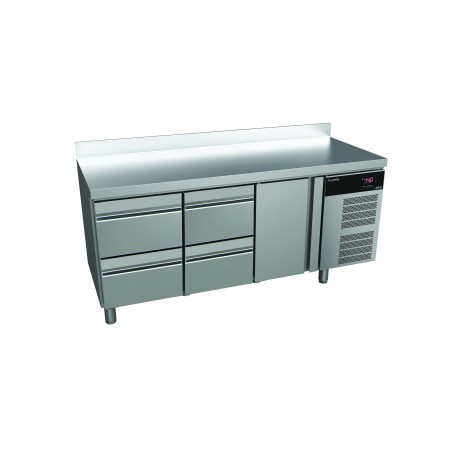 Corp inox, 6 sertare si o usa, interior proiectat pentru o curatare usoara, usi cu inchidere magnetica, izolatie din poliuretan fara CFC/HCFC -injectat la presiune mare, grosime izolatie 50mm, temperatura ambientala de 43C, dezghetare automata, termostat electronic, picioare ajustabile, volum 500L, temperatura -2C-> 4C, putere 373W, greutate 180kg, dimensiune 2250x600x870mm, tara de origine Grecia