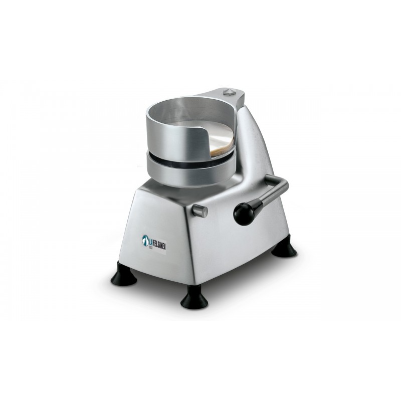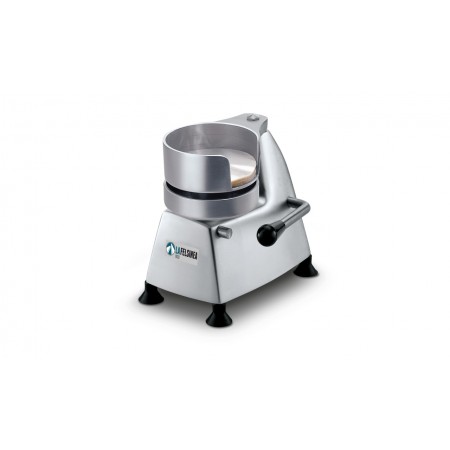 Corp inox, dimensiuni de 140 x 270 x 260 mm, Diametrul patty 100,Masina de format hamburgeri simpla si compacta cu design rotunjit fabricata din aliaj de aluminiu anodizat. Dispune de suport integrat pentru foi matrita din otel inoxidabil pentru hamburgeri si picioare din cauciuc. tara de originie Italia.