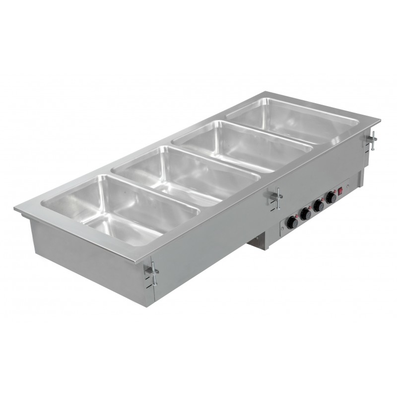 Corp inox, dimensiuni 1440 x 610 x 304mm, interior rotunjit la margini pentru o curatare usoara, putere 3200W, alimentare 230V, temperatura +30℃ la +90℃, capacitate 4GN 1/1, termostat analog, tara de origine Spania.